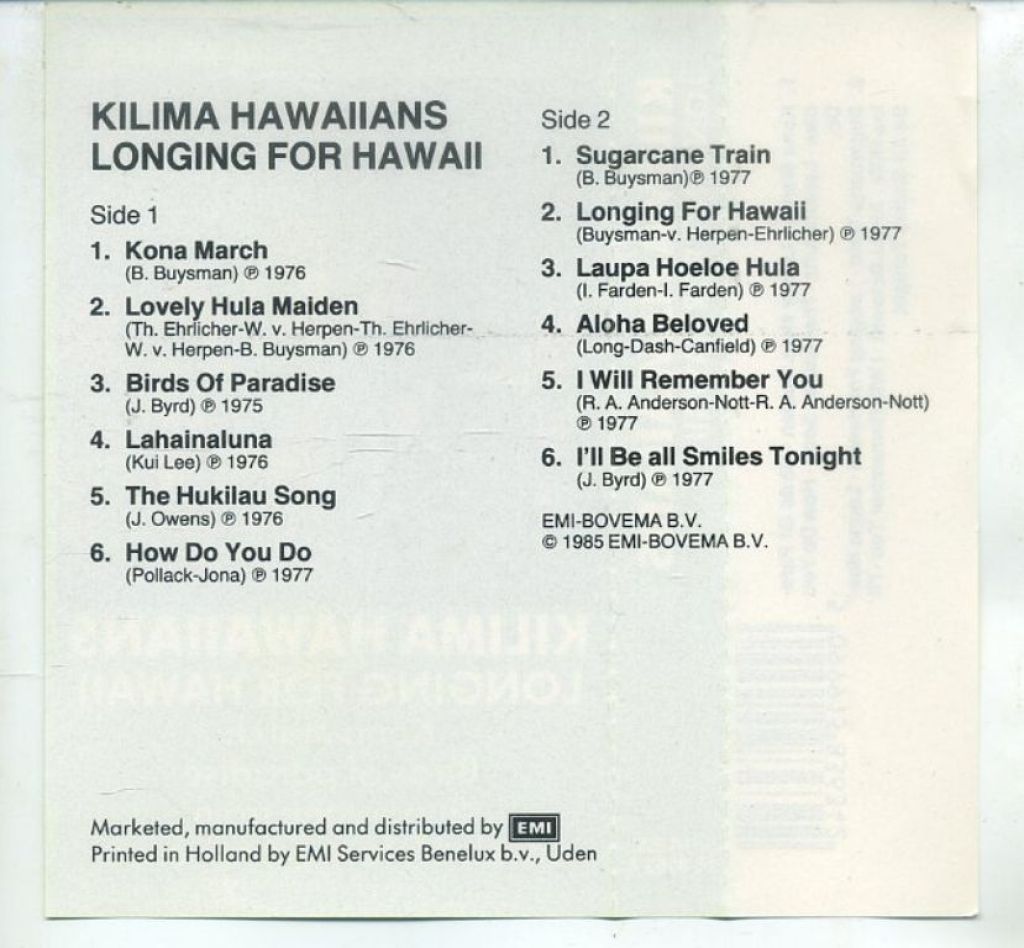 2) Kilima Hawaiians – Longing For Hawaii 12 nrs 1985 ZGAN