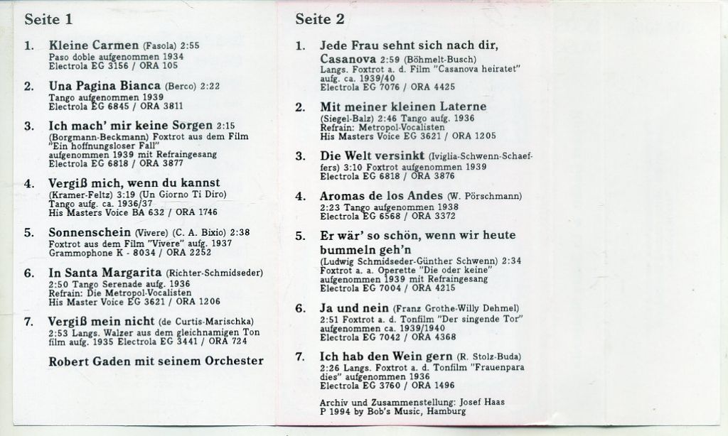 6. Ja und nein (Franz Grothe-Willy Dehmel) 2:51 Foxtrot a. d. Tonfilm "Der singende Tor'' aufgenommen ca. 1939/1940
