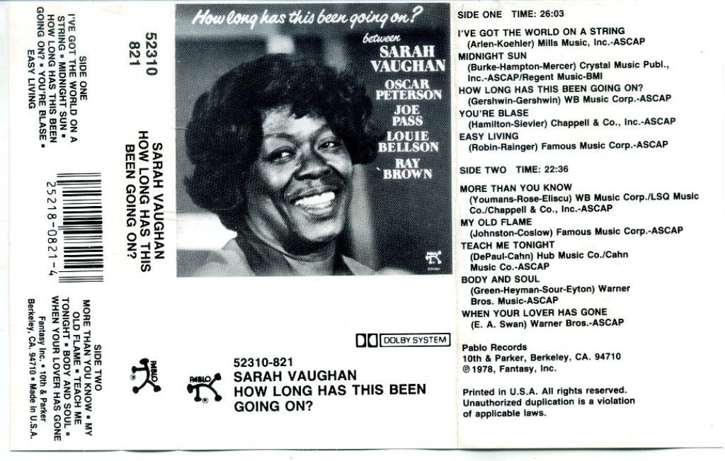 Sarah Vaughan – How Long Has This Been Going On? 10 nrs cassette 1978 ZGAN