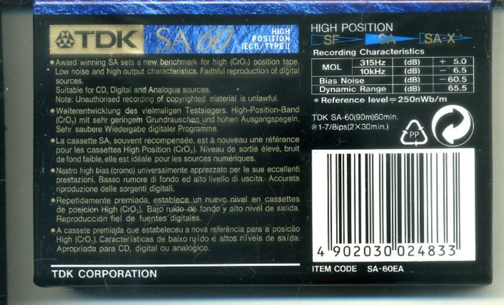 TDK SA 60EA Type II cassette For CD NIEUW GESEALD