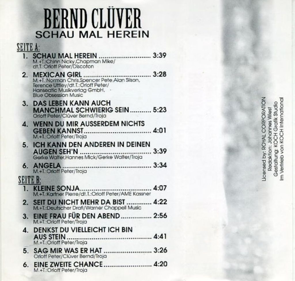 1) Bernd Clüver Schau mal herein 12 nrs cassette 1997 ZGAN