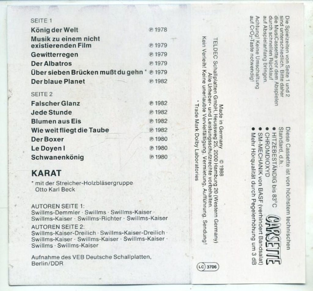 KARAT – Gewitterregen 14 nrs cassette 1988 ZGAN
