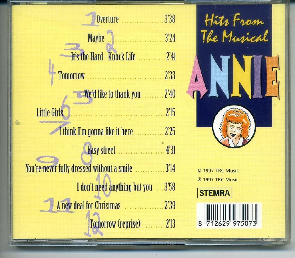 Hits From The Musical ANNIE 12 nrs cd 1997 ZGAN