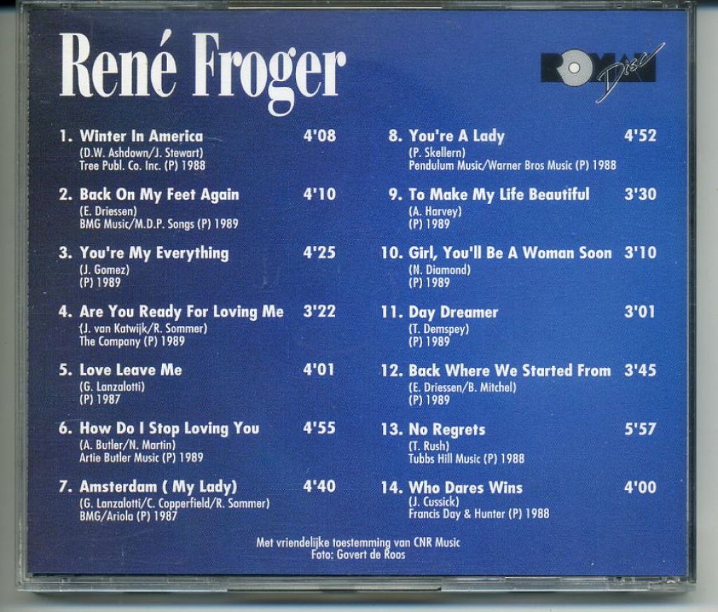 1) René Froger 14 nrs Roman Disc – 2000920 CD 1990 ZGAN