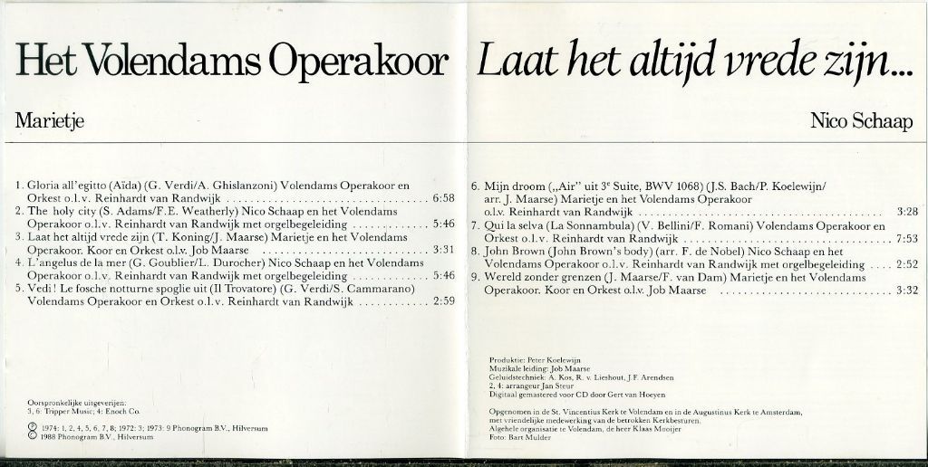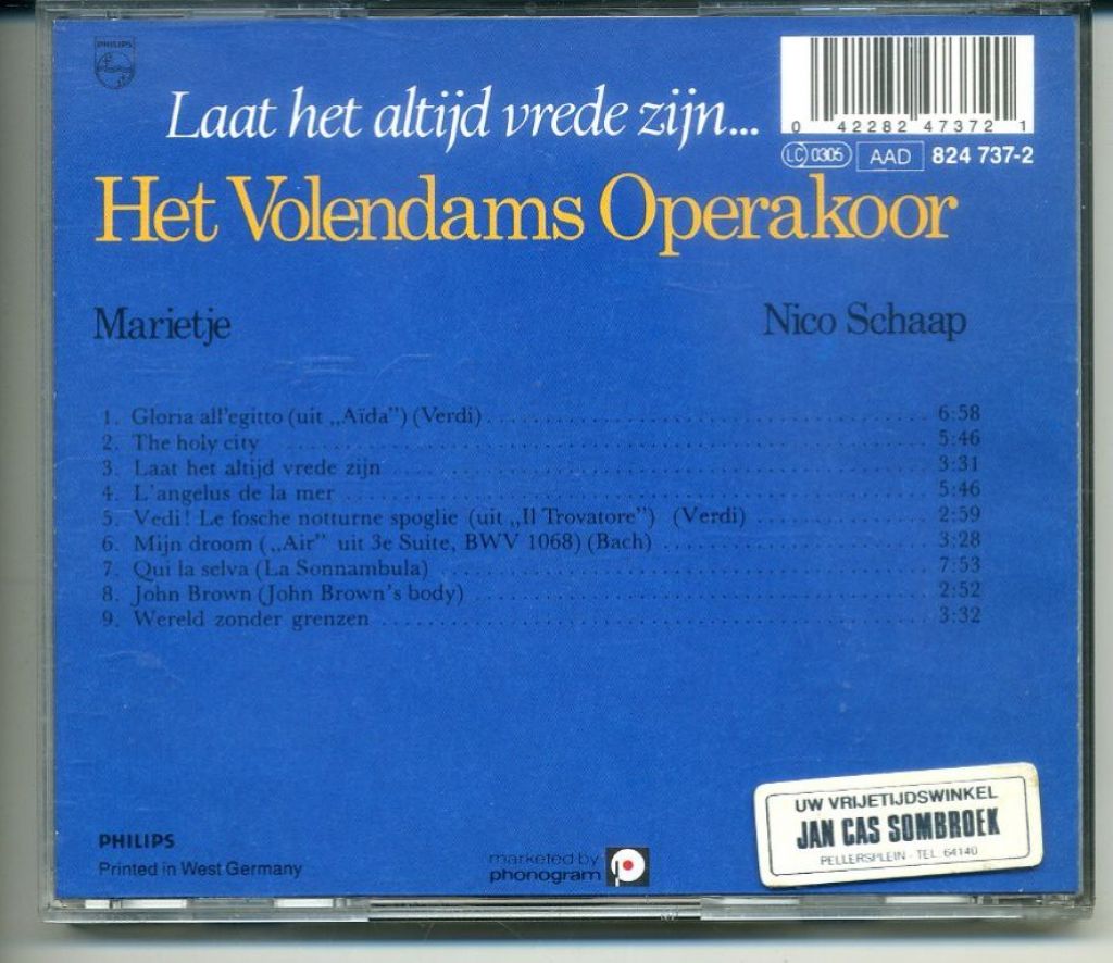 Het Volendams Operakoor – Laat Het Altijd Vrede Zijn 9 nrs CD ZGAN