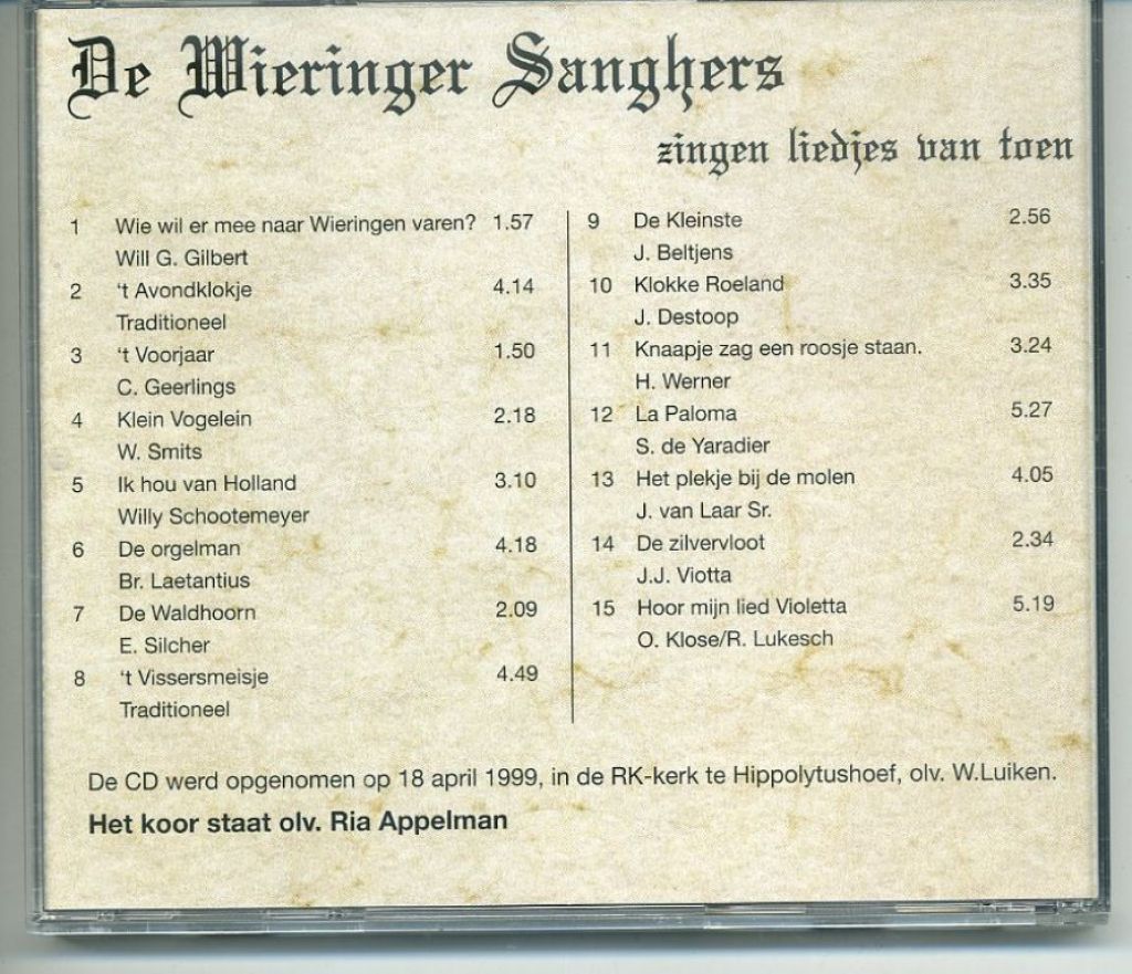De Wieringer Sanghers zingen liedjes van toen 15 nrs CD ZGAN