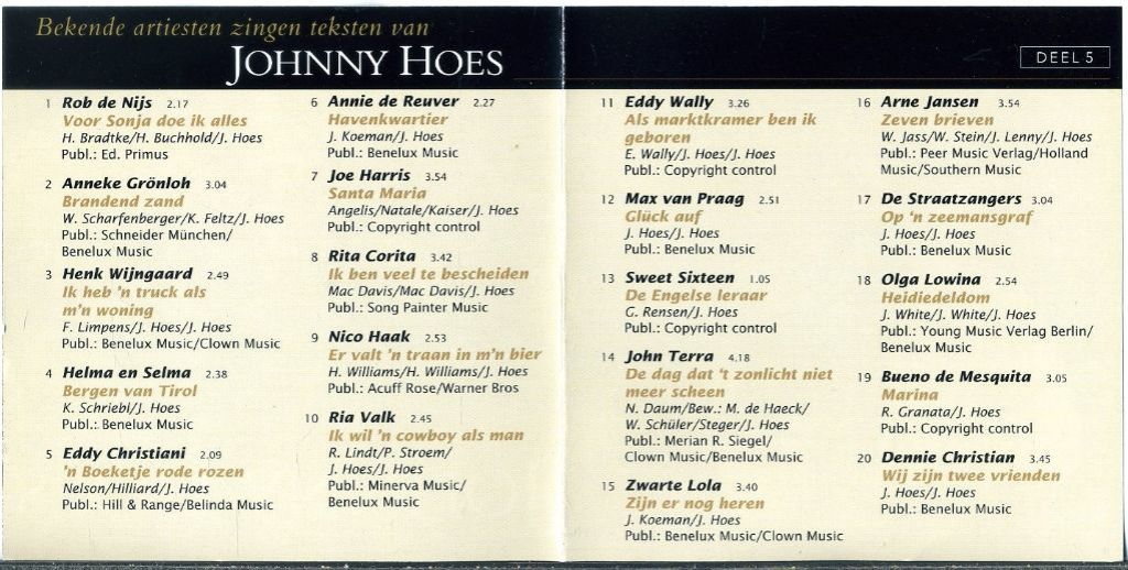 Johnny Hoes Och was ik maar deel 5 20 nrs CD 2003 ZGAN