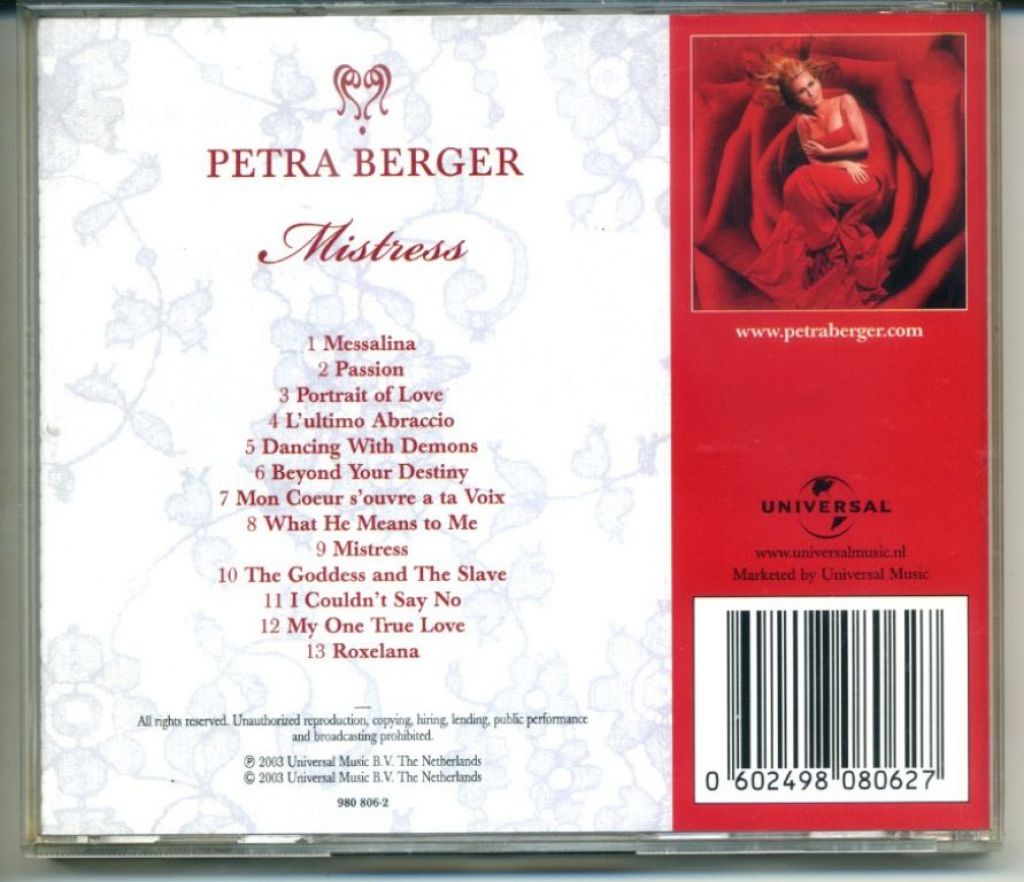 Petra Berger Mistress 13 nummers cd 2003 ZGAN