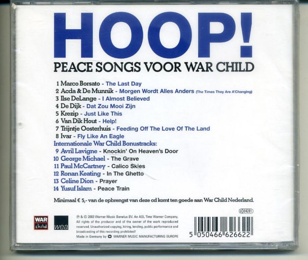 HOOP! Peace Songs voor War Child cd NIEUW in verpakking