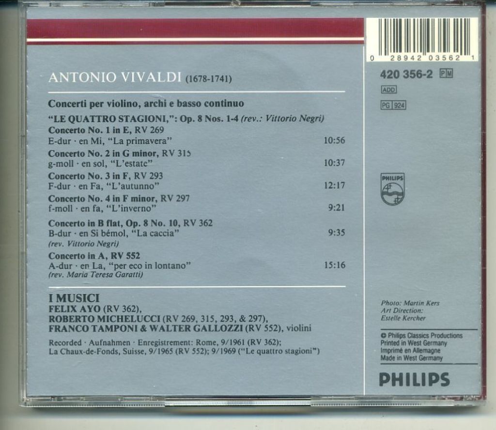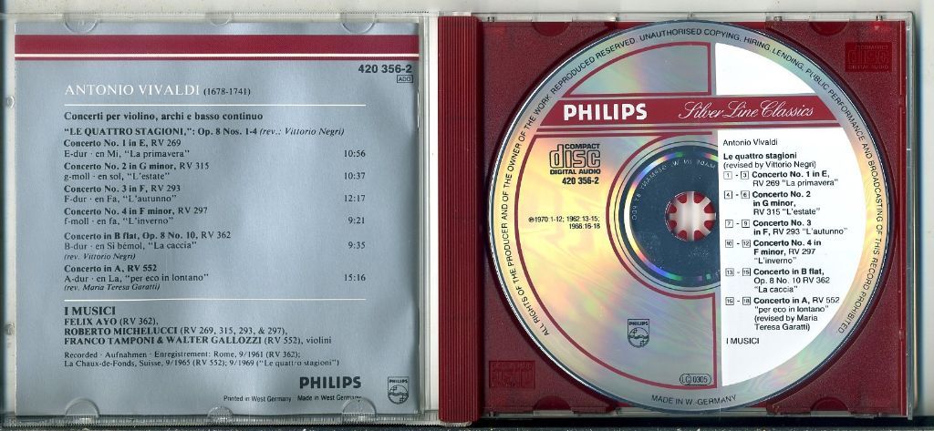 Vivaldi Four Seasons 2 Concertos 18 nrs cd 1990 ZGAN