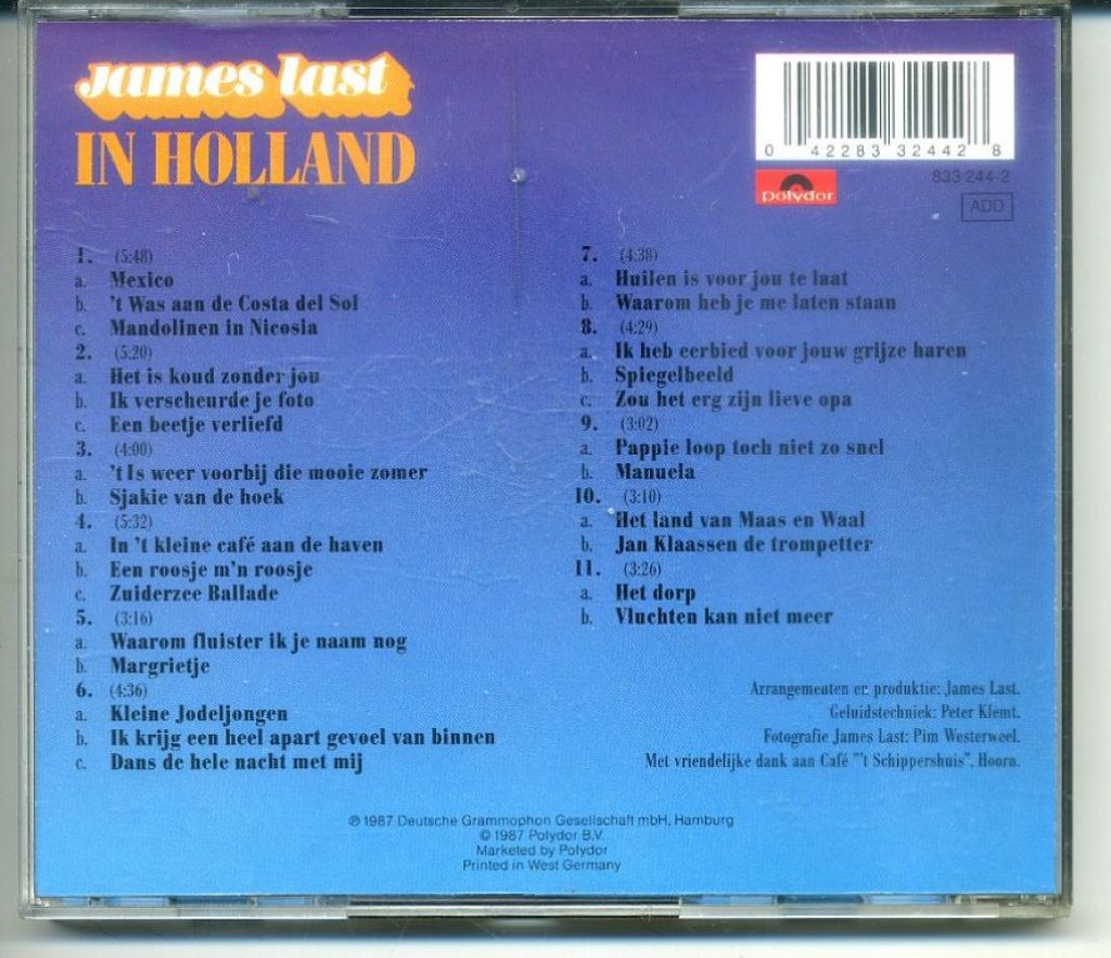 3) James Last – In Holland (De 27 Mooiste Nederlandse Hits) 11 medley’s 1987 Polydor – 833 244-2