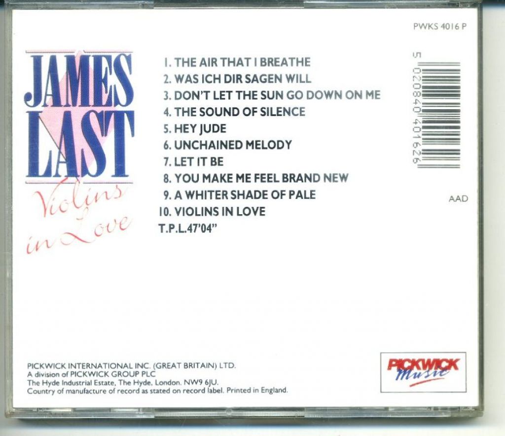 7) James Last – Violins In Love 10 nrs 1989 Pickwick Music – PWKS 4016 P
