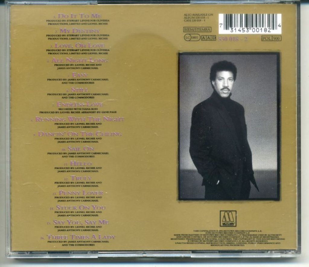 Lionel Richie Back To Front 16 nrs cd 1992 ZGAN