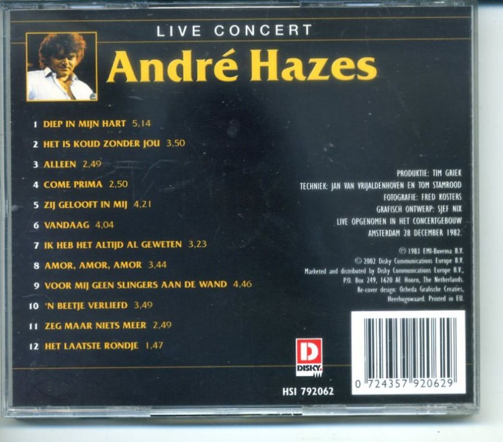 André Hazes – Live Concert 12 nrs CD 2002 ZGAN