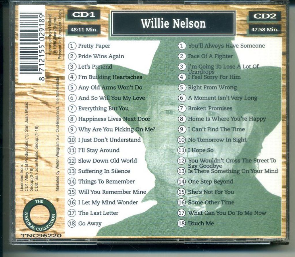 Willie Nelson – The Natural Collection 36 Songs 2CD's 1996 ZGAN