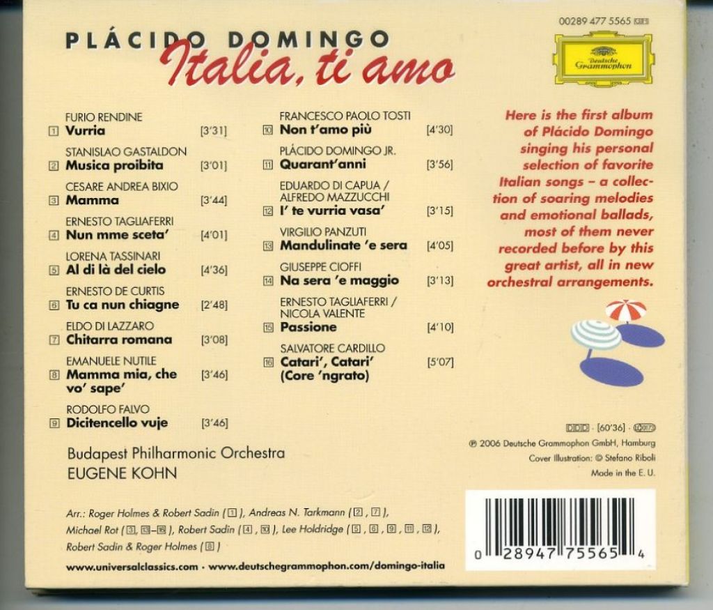 Placido Domingo – Italia Ti Amo 16 nrs CD 2006 ZGAN