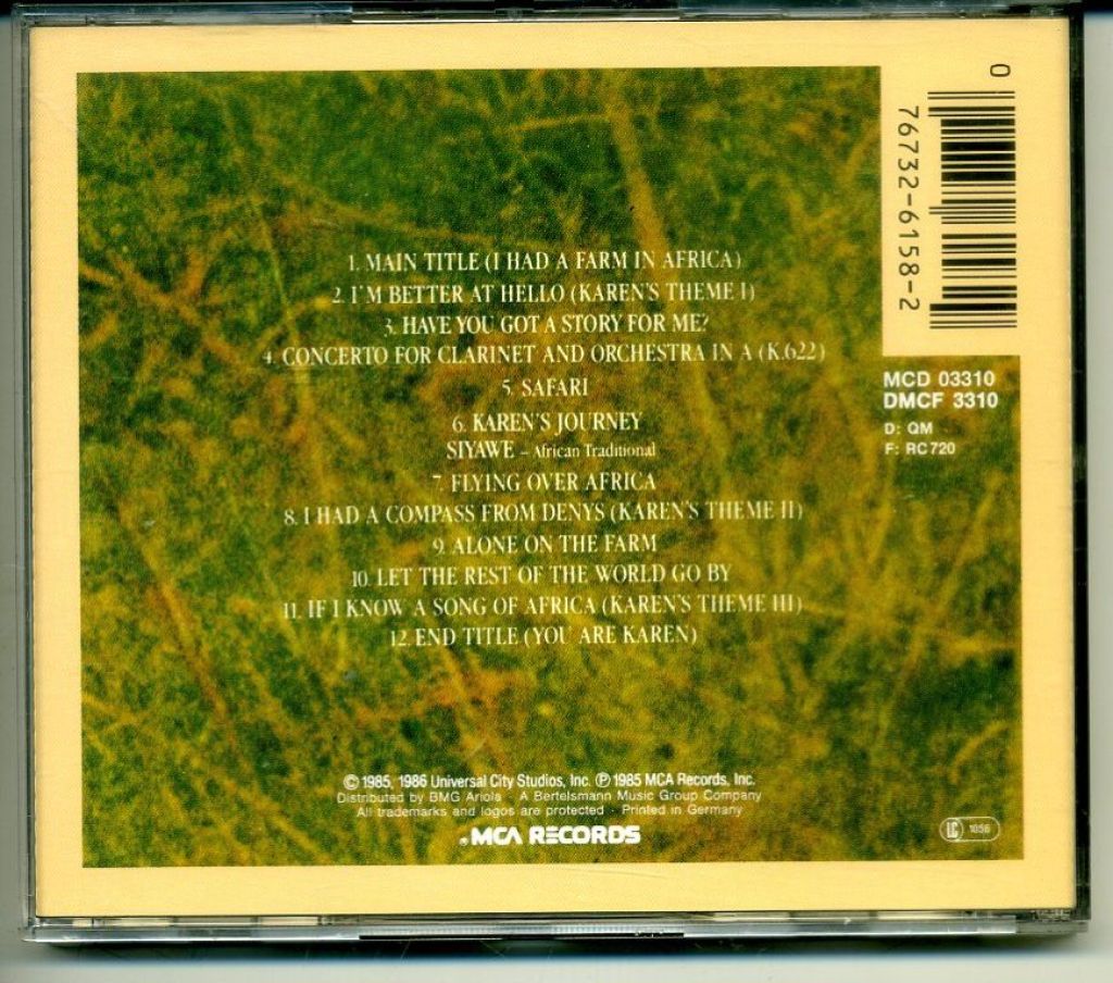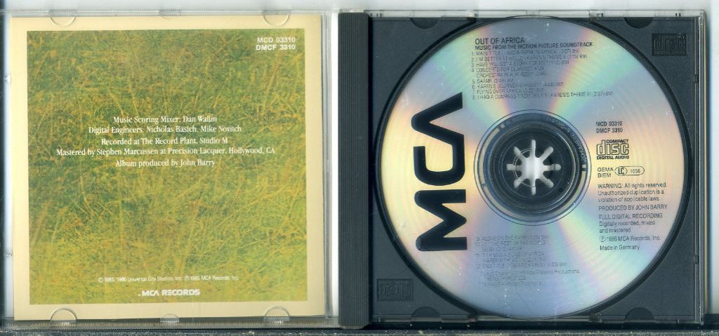 John Barry Out Of Africa Filmmuziek 13 nrs cd 1986 ZGAN