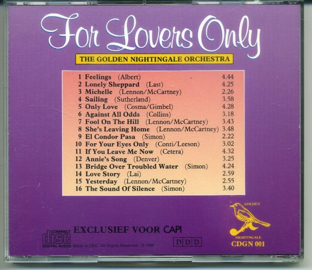 The Golden Nightingale Orchestra – For Lovers Only 16 nrs CD 1988 ZGAN