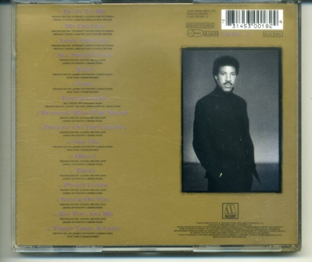 Lionel Richie Back To Front 16 nrs cd 1992 ZGAN