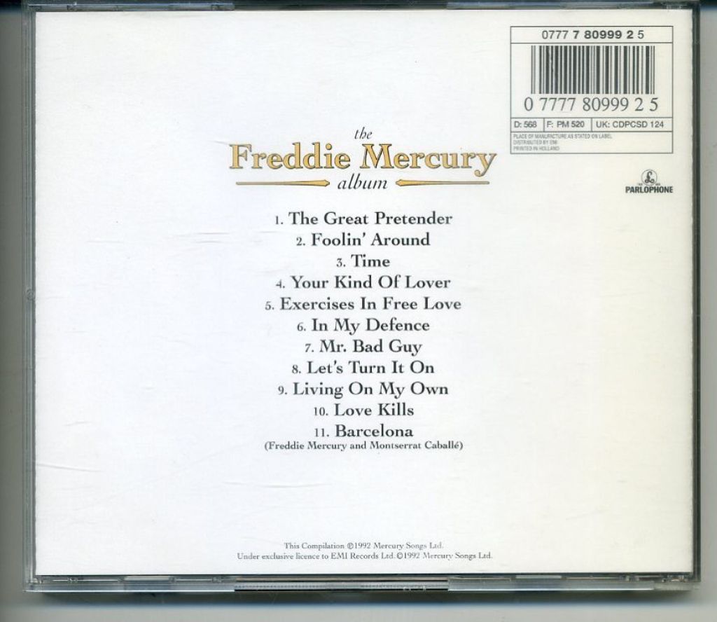 Freddie Mercury – The Freddie Mercury Album 11 nrs CD 1992 ZGAN