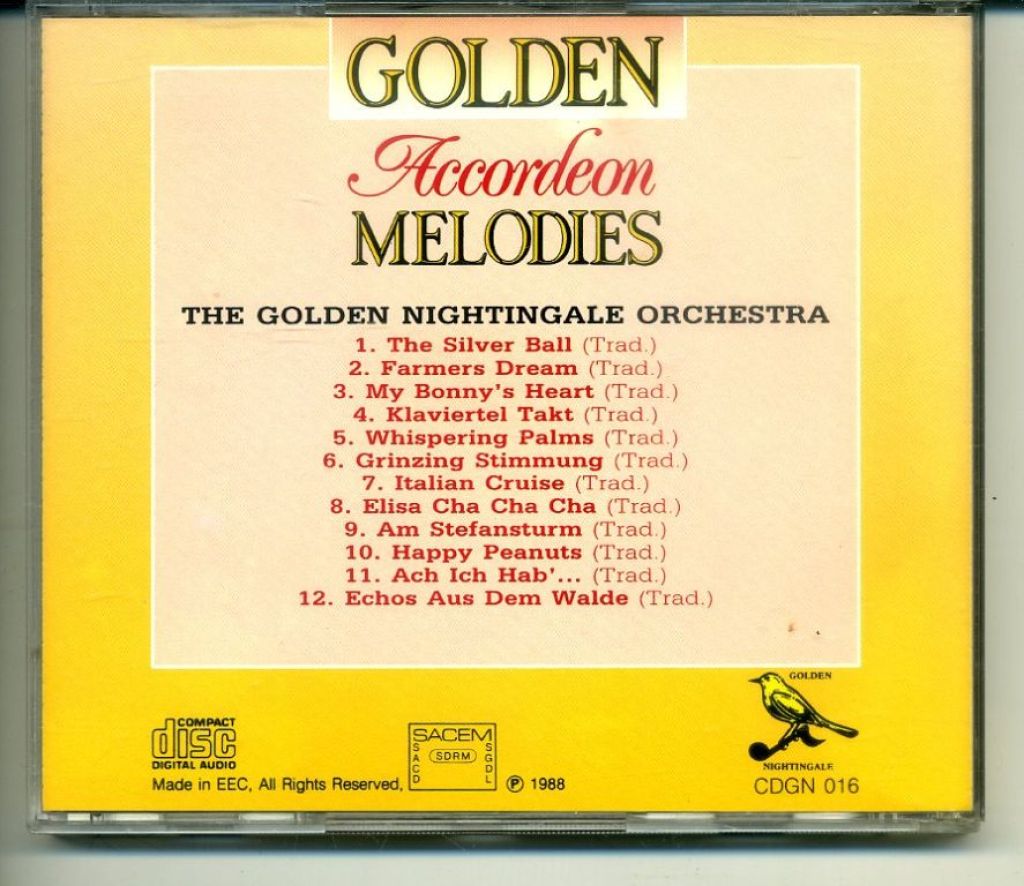 The Golden Nightingale Orchestra – Golden Accordeon Melodies 12 nrs CD 1988 ZGAN