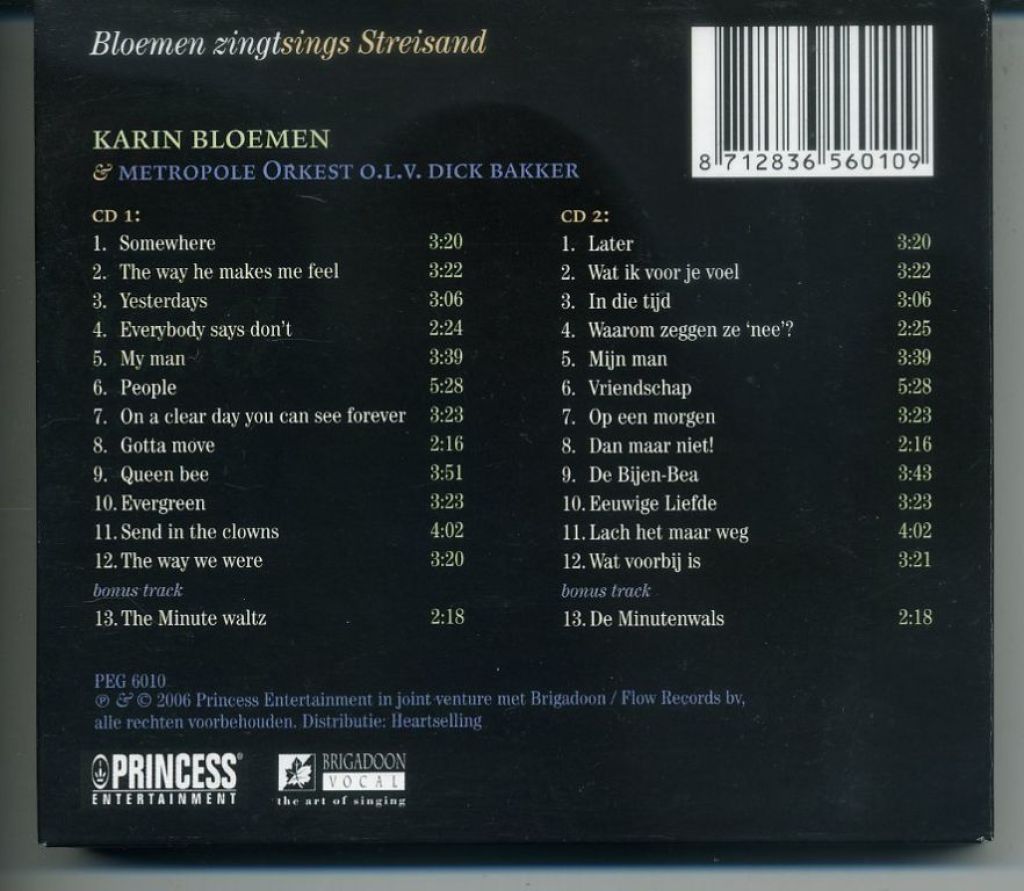 Bloemen zingt sings Streisand 26 nrs 2 cds 2006 NIEUWSTAAT