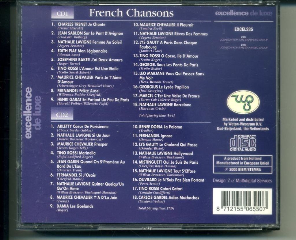 Genre: FRANSTALIGE POP / CHANSONS