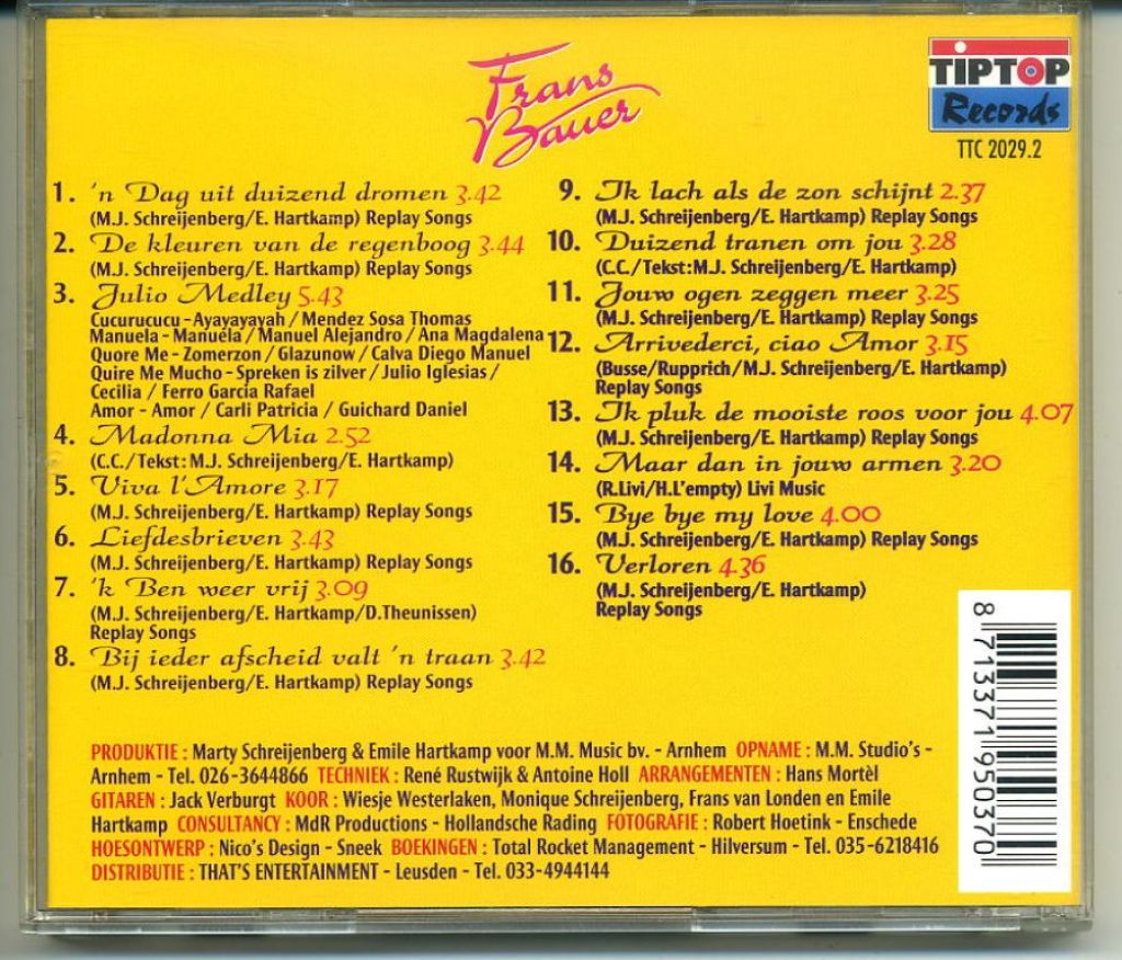 1) Frans Bauer – Hollandse Hits 12 nrs CD 2004 ZGAN