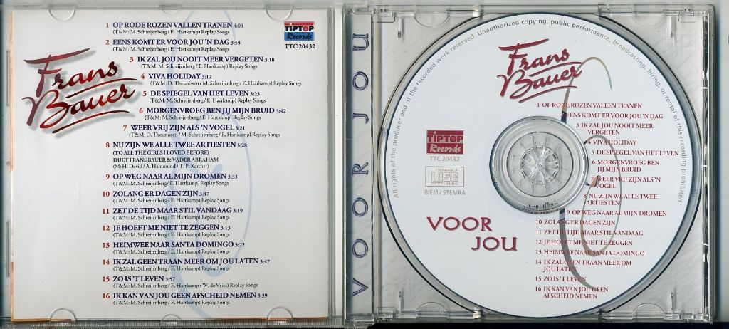 3) Frans Bauer Voor jou 16 nrs cd 1996 ZGAN