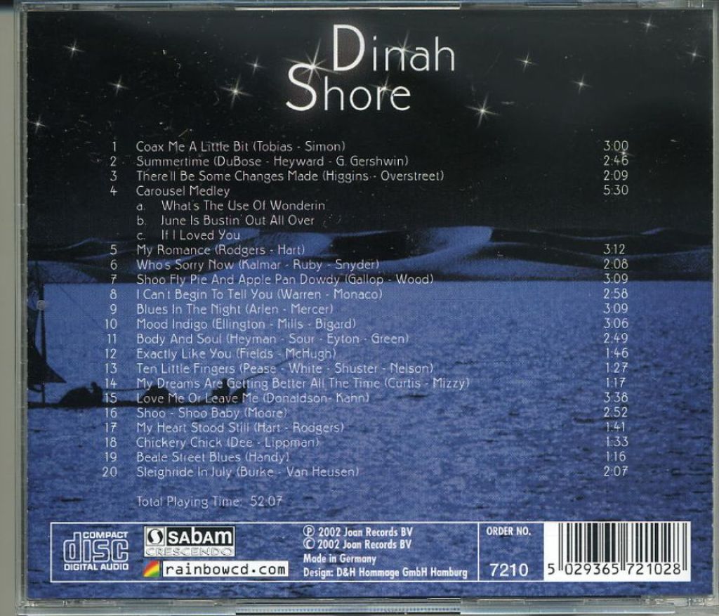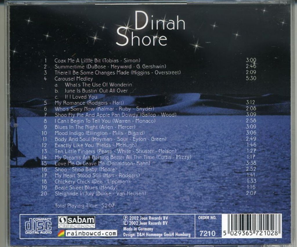 Dinah Shore 20 nummers tijdsduur 0:52:07