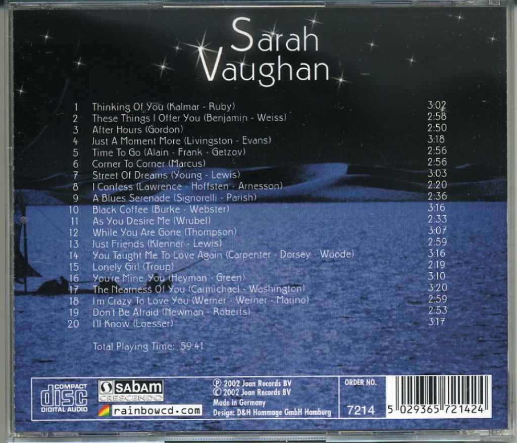 Sarah Vaughan 20 nummers tijdsduur 0:59:41