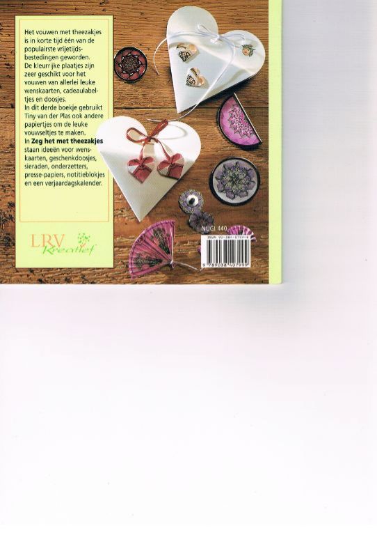 Tiny van der Plas – Zeg het met theezakjes. Uitg. LRV-Kreatief. 1995. Gelijmd. 32 pagina's. Met kleurenfoto's en tekeningen. Nieuwstaat.