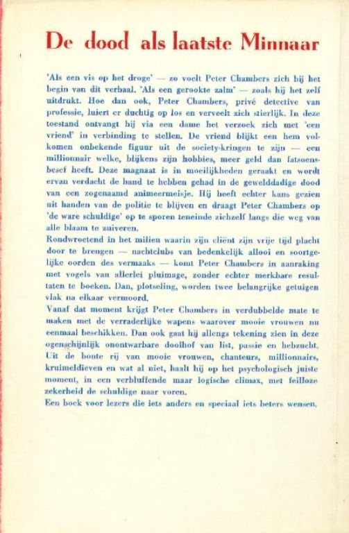 Hoe dan ook, Peter Chambers, privé detective van professie, luiert er duchtig op los en verveelt zich stierlijk.