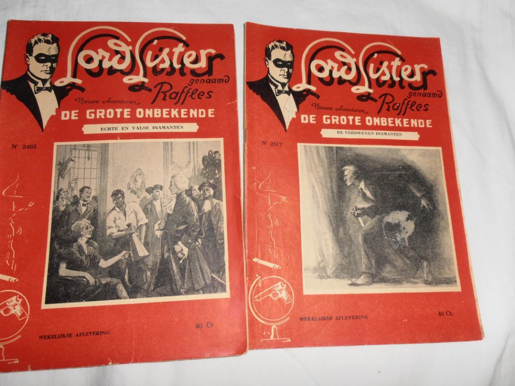 De verhalen van Raffles begonnen omstreeks 1900. Eerst in boekvorming en later als weekblad door verschillende schrijvers. E.e.a. liep door tot ca. 1968. In totaal zijn er ca. 500 verhalen verschenen, die vaak werden herdrukt en dan een nieuw nummer kregen. Er zijn verzamelaars, die proberen de gehele collectie compleet te krijgen. Ik probeer het zelf ook, maar het is mij nog niet gelukt. En maakt compleet zijn dan zo gelukkig?