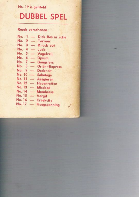 Uitg. Nooit Gedacht. 1963. Eerste druk in deze serie. In een vroegere serie heette dit deel “Double X”. Gebruikssporen o.a. naam op titelblad, door het lezen is de rug een beetje schuin. Verder in vrij goede staat. 192 blz. ...