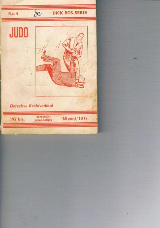 Uitg. Nooit Gedacht. 1961. Eerste druk in deze serie. In een vroegere serie heette dit deel Jiu-Jitsu. In dit deel treedt Maurice van Nieuwenhuizen op, naar wiens uiterlijk Dick Bos is getekend. Het boekje is in vrij goede staat, met als opmerkingen o.a: getal op cover, de rug zit onderaan een paar mm los, licht beduimeld en een paar kreukjes op de cover. Desalniettemin toch een vrij zeldzaam nummer. Dikte 1 cm. Gewicht 58 gram. Verzendkosten vanaf € 3,95. Prijs € 14,95.