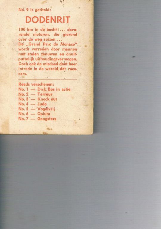 Uitg. Nooit Gedacht. 1963. Eerste druk in deze serie. In een vroegere serie heette dit deel “Nemesis”. Gebruikssporen o.a. kreukjes voor- en achterkaft, voorkaft zit onderaan ca. 3 cm los, titelblad ontbreekt ...
