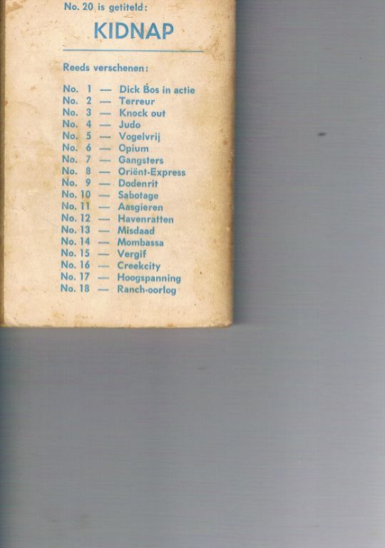 Uitg. Nooit Gedacht. 1963. Eerste druk in deze serie. In een vroegere serie heette dit deel Soho. Wat gebruikssporen o.a. beetje verkleurd, voorkaft en titelblad zitten voor de helft los. 192 blz. Dikte 1 cm. Gewicht 58 gram. Verzendkosten vanaf € 3,95. Prijs € 7,50.