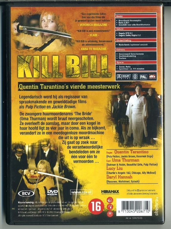 Kill Bill Vol. 1 & 2 actie film 2 DVD’s 2003 & 2004 ZGAN