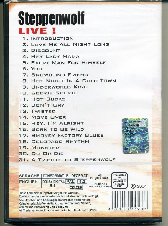 Steppenwolf LIVE ! (dvd 2004 NIEUW in de verpakking)