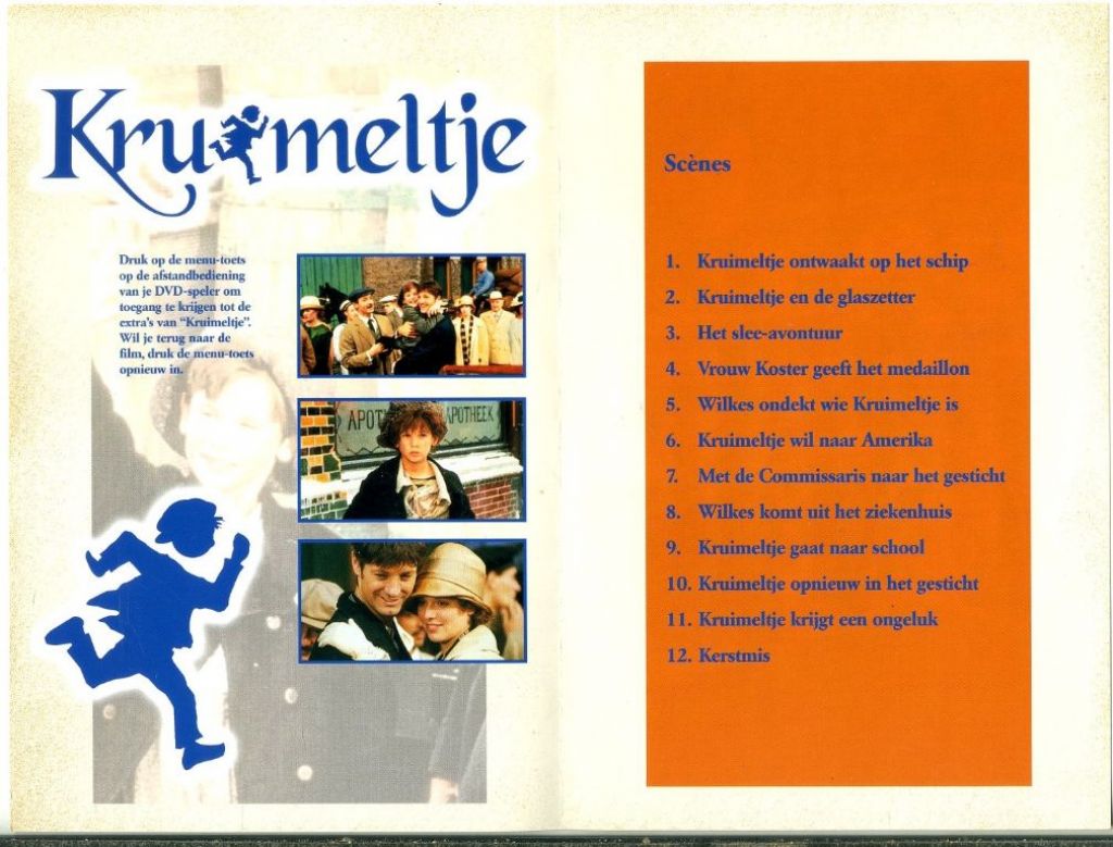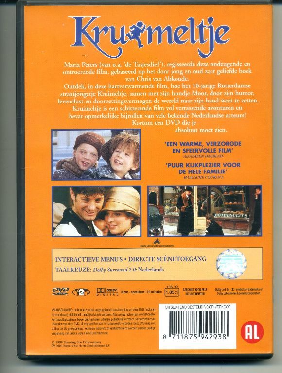 Marie Peters (van o.a. ' de Tasjesdief'), regisseerde deze ondeugende en ontroerende film, gebaseerd op het door jong en oud zeer geliefde boek van Chris van Abkoude. Ontdek, in deze hartverwarende film, hoe het 10-jarige Rotterdamse straatjongetje Kruimeltje, samen met zijn hond Moor, door zijn humor, levenslust en doorzettingsvermogen de wereld naar zijn hand weet te zetten. Kruimeltje is een schitterende film vol verassende avonturen en bevat opmerkelijke bijrollen van vele bekende Nederlandse acteurs!
