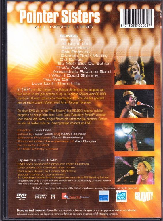 Pointer Sisters All Night Long 12 nrs dvd 1989 als NIEUW