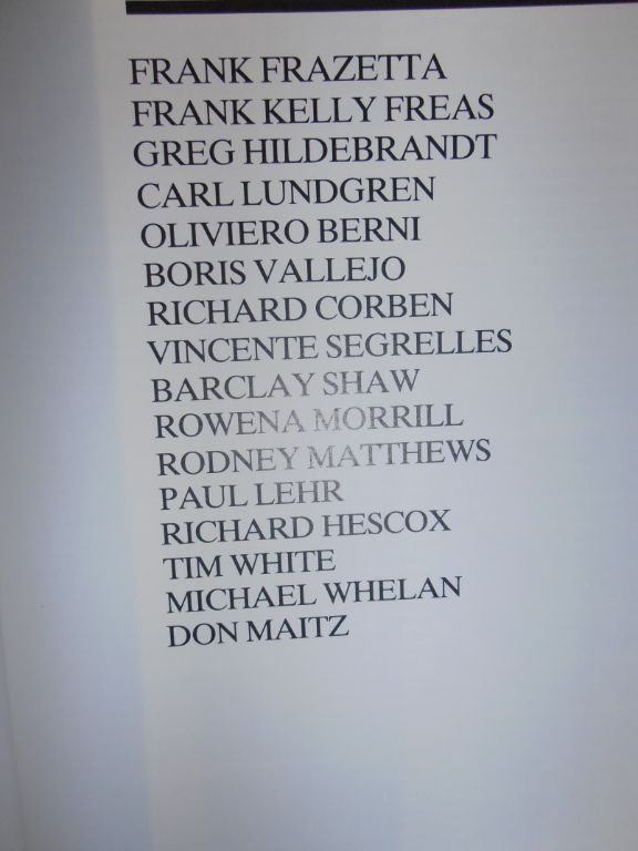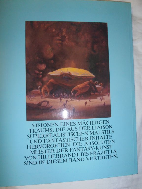 Uitgave van 1986 (sc) in ca. A4 formaat. 96 pagina's van wat dikker papier, waarvan ongeveer de helft bestaat uit kleurenfoto van bekende fantasy-tekenaars. In het boek is een namenlijst afgebeeld van de tekenaars, waarvan ik een foto zal maken. De foto's maak ik van het boek uit mijn eigen verzameling. Het verkoop exemplaar is in nieuwstaat en in seal verpakking. In Duitse taal.