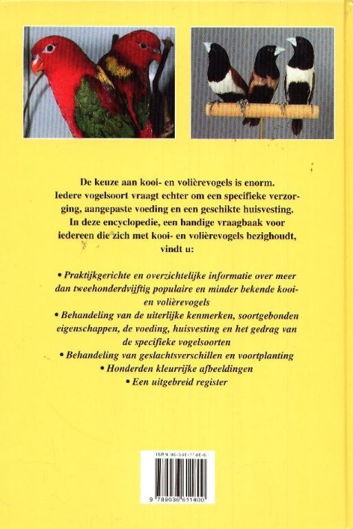 In deze encyclopedie, een handige vraagbaak voor iedereen die zich met kooi- en volièrevogels bezig houdt, vindt u: