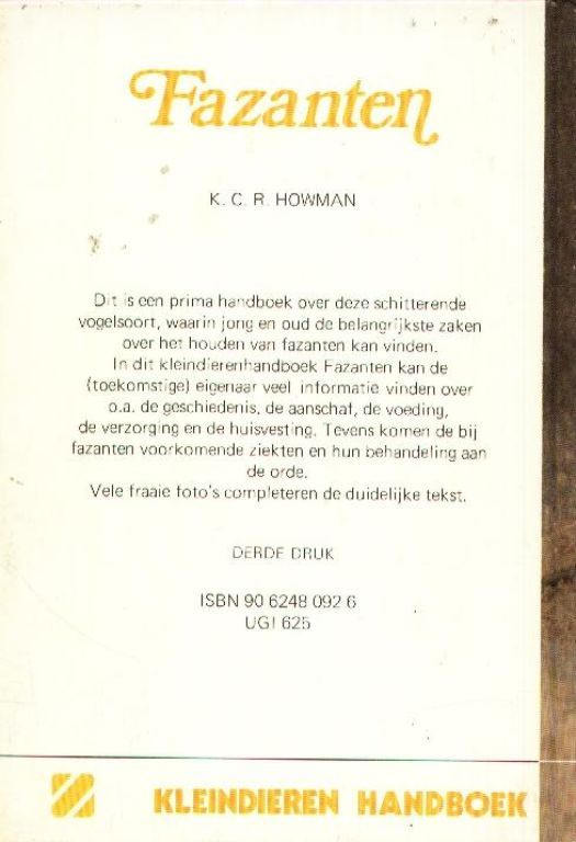 Tevens komen de bij fazanten voorkomende ziekten en hun behandeling aan de orde.