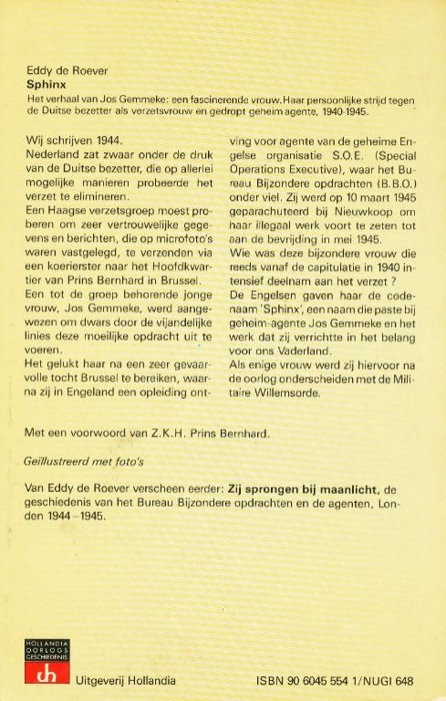 De Engelsen gaven haar de codenaam 'Sphinx', een naam die paste bij geheim-agente Jos Gemmeke en het werk dat zij verrichtte in het belang voor ons Vaderland.