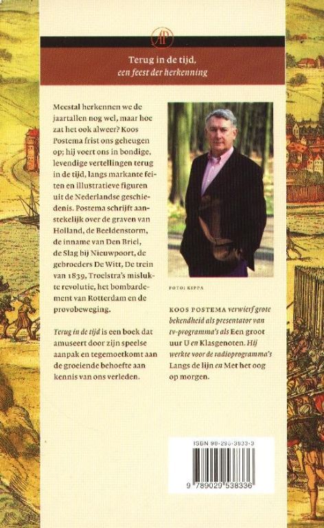 Koos Postema herinnerde zich de smakelijke verhalen die hij op school tijdens de geschiedenisles opgedist kreeg en bracht ze bijeen in Terug in de tijd, een leerzaam en meeslepend lees- en voorleesboek voor iedereen.