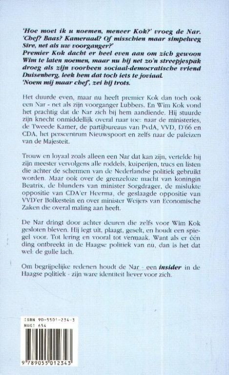 Trouw en loyaal zoals alleen een Nar dat kan zijn, vertelde hij zijn meester vervolgens alle roddels, kuiperijen, trucs en listen die achter de schermen van de Nederlandse politiek gebruikt worden.