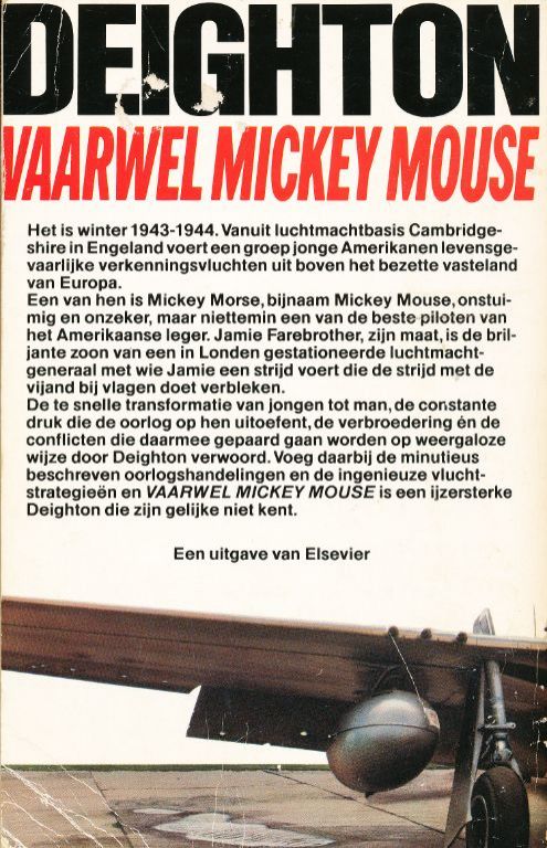 Voeg daarbij de minutieus beschreven oorlogshandelingen en de ingenieuze vluchtstrategieën en VAARWEL MICKEY MOUSE is een ijzersterke Deighton die zijn gelijke niet kent.