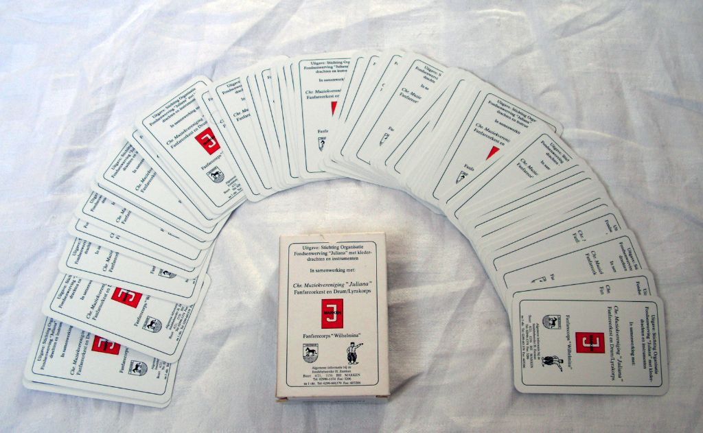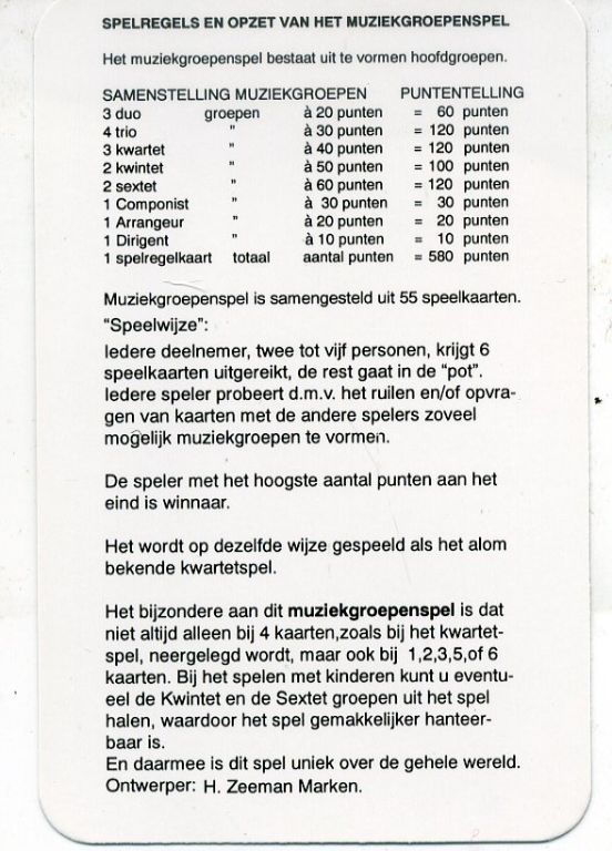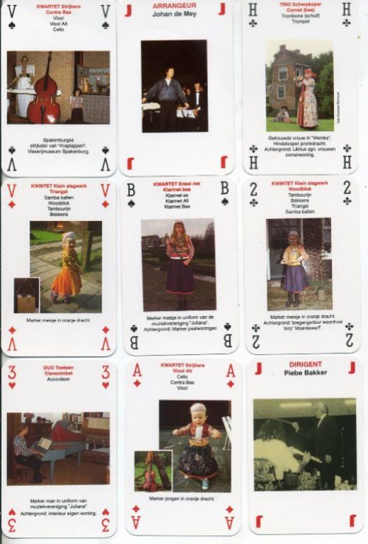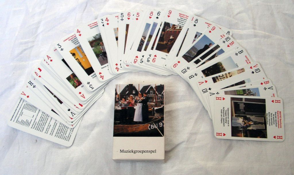 Spel is uniek over de gehele wereld muziekgroepenspel bestaat uit 55 kaarten + kaart met spelregels, alle in kleur uitgevoerd met klederdracht en muziekinstrumenten.